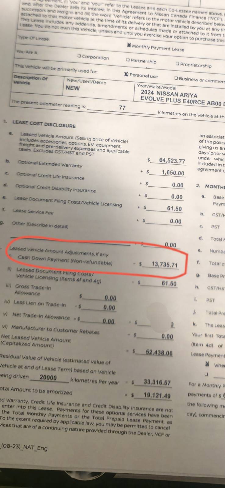 - Residual Value: 16,710 CAD